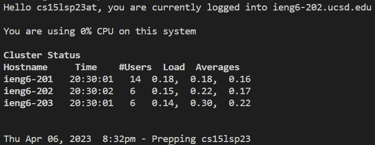 ssh cs15lyyyyzz@ieng6.ucsd.edu with the yyyyzz part being differentyes and hit enterYour output will look something like this: