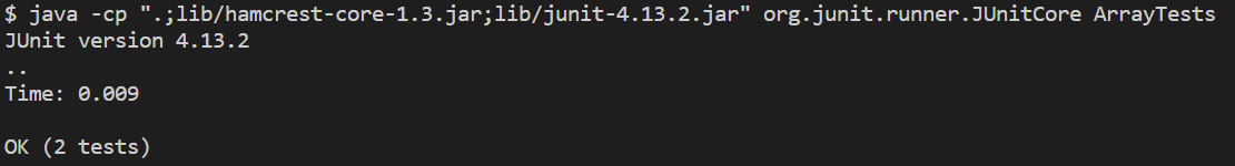 return arr; to return newArray;And the bug is fixed! This can easily be verified by recompiling and running JUnit again: