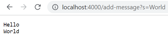 handleRequest method of the StringHandler class is called when the URL is entered by the usernew URI(http://localhost:4000/add-message?s=World)